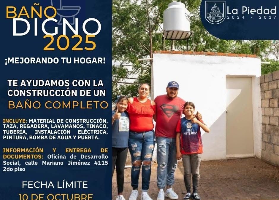 Con el propósito de dignificar los hogares de quien más lo necesita, el Gobierno Municipal de La Piedad, habilita el programa “Baño Digno 2025”, donde 25 familias de la localidad serán beneficiadas con el material de construcción de forma gratuita para poder construir un baño digno en su vivienda, lo que se suma a un total de 100 familias beneficiadas con dicho programa.